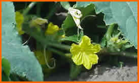 -Flor: de corto pedúnculo y pétalos amarillos. Las flores aparecen en las axilas de las hojas y pueden ser hermafroditas o unisexuales, aunque los primeros cultivares conocidos eran monoicos y solamente presentaban flores masculinas y femeninas y en la actualidad todas las variedades comerciales que se cultivan son plantas ginoicas, es decir, sólo poseen flores femeninas que se distinguen claramente de las masculinas porque son portadoras de un ovario ínfero.